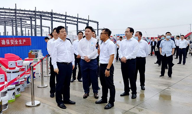 近日,保定市委書記黨曉龍一行調(diào)研保定東方雨虹建設(shè)項目。